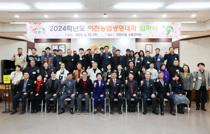 [뉴스서치] 이천시는 13일 농업생명대학 입학생 및 내빈 등 120여 명이 참석한 가운데 이천시청에서 2024학년도 이천농업생명대학 입학식을 실시했다.