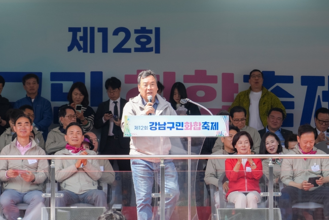 ▲ 지난 4월 27일 열린 ‘제12회 강남구민화합 축제’ 에서 강남구의회 김형대 의장이 인사말을 하고 있다. |