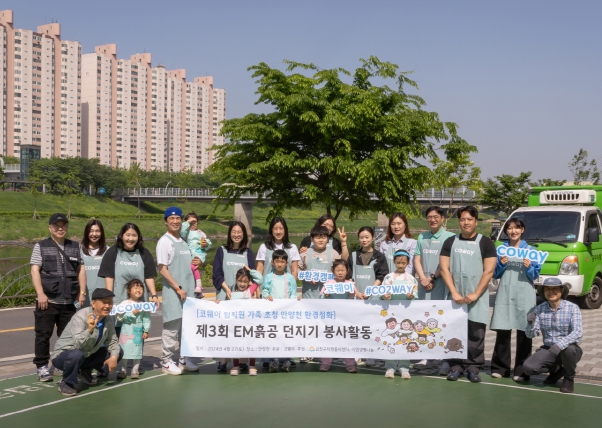 이번 안양천 환경정화 활동은 코웨이 임직원과 임직원의 가족 총 30명이 참여하는 가족 참여형으로 진행됐다. 참여자들은 10시부터 12시까지 다목적광장에 모여 흙공 1,500개를 직접 만들었고, 앞서 만들어 놓은 흙공 1,500개를 안양천에 던졌다.