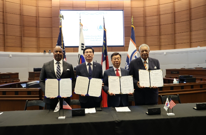17일 성남산업진흥원 이의준 원장은 조지아주 풀턴 카운티에서는 양 지역의 우호 관계 구축을 위한 협약체결을 지원하고자 ‘풀턴카운티 개발청*)’과 산업·경제 분야의 협력을 주요 내용으로 한 양해각서를 체결했다.
