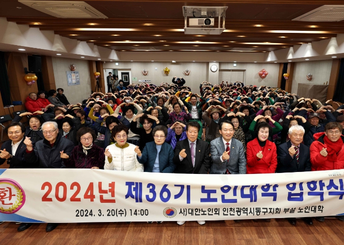 [뉴스서치] 인천 동구는 (사)대한노인회 동구지회 부설 노인대학이 동구노인복지관에서 제36기 노인대학 입학식을 개최했다고 밝혔다. 입학식에는 노인대학 입학생, 기관단체장 등 170여명이 참석했다.