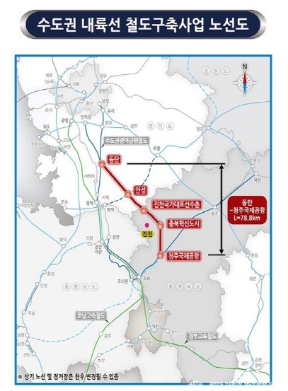 수도권내륙선 광역철도는 동탄~안성~진천선수촌~충북혁신도시~청주국제공항까지 78.8㎞를 이으며 약 2조 2천466억 원의 사업비가 투입되는 대규모 사업으로