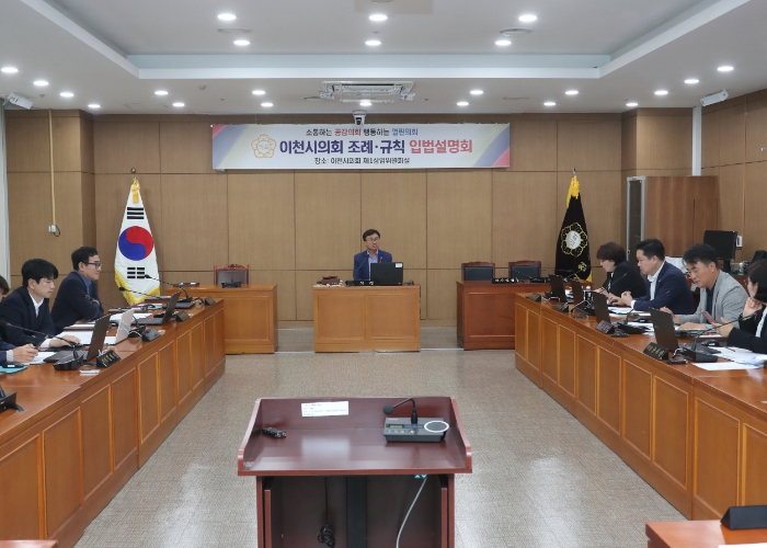 [뉴스서치] 이천시의회가 축산, 체육, 복지 등 다양한 분야의 조례안에 대한 입법설명회를 개최해 눈길을 끈다.