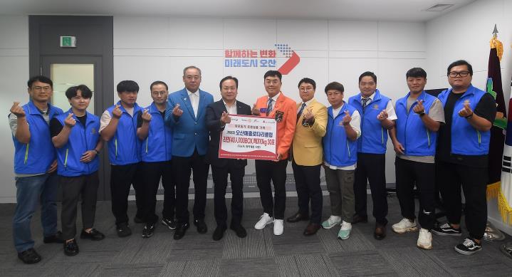 이날 오산시장, 김민영 오산매홀로타리클럽 회장 및 클럽 관계자 등 10여 명이 참석한 가운데 오산시청에서 기탁식을 가졌다.