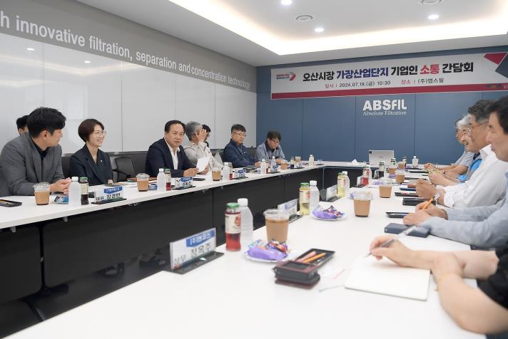 이날 이권재 오산시장을 비롯하여 가장산업단지 내 기업 대표 및 임직원이 참석한 가운데 기업 내 현안과 애로사항에 대해 소통하는 시간을 갖고 이에 대한 발전방안을 논의했다.