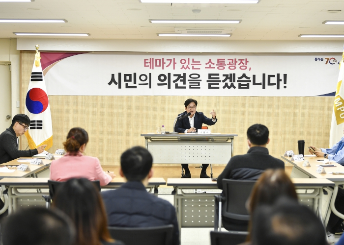 ▲ 김병수 김포시장이 지난해 11월 서울통합 시민 의견 청취에 나섰다. |