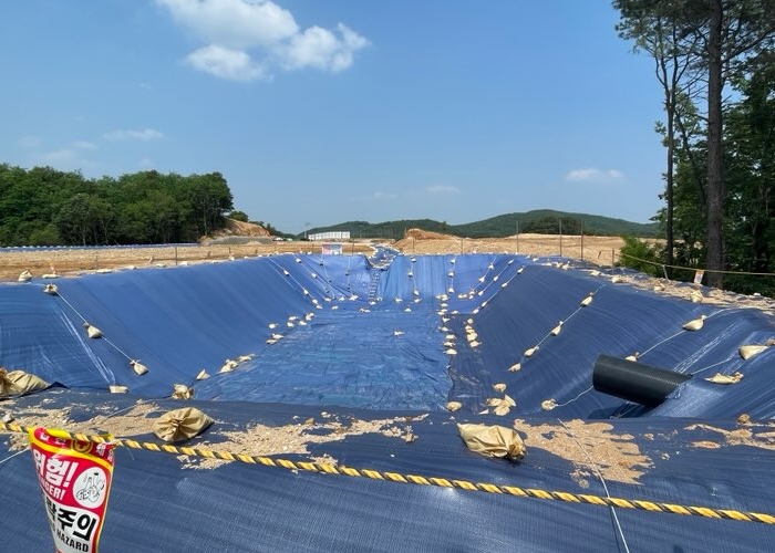 ▲ 임시침사지(공사 중 우수 및 토사유출로 인한 재해를 방지하기 위한 임시 저감시설) 점검 사진 |