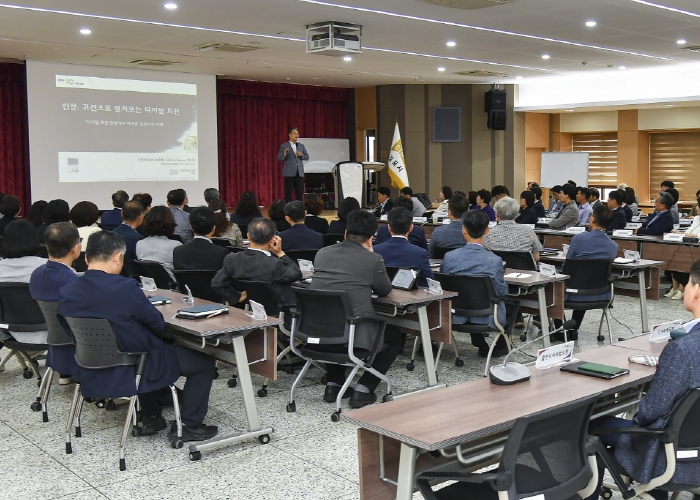 이번 교육은 자의누리 경영연구원 원장인 서진영 박사의 “디지털트윈 관점에서 바라본 김포시 행정진단과 활용 및 미래 발전 방안 제시”라는 주제로 생소하고 어려운 클라우드 기반의 디지털트윈 개념을 퇴계의 이기이원론(理氣二元論)과 접목하여 누구나 쉽게 이해할 수 있도록 설명했다.