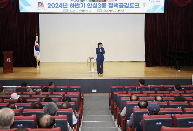 시민들과의 공감대 형성 및 소통을 위해 마련된 이날 정책공감토크는 안성3동 주민자치센터 노래교실반의 식전 공연으로 시작해 지난 상반기 정책공감토크에서 논의 됐던 현안사항 추진경과를 공유하였으며, 주민들의 다양한 애로사항과 지역 현안 사항을 논의하는 소통의 시간을 가졌다.