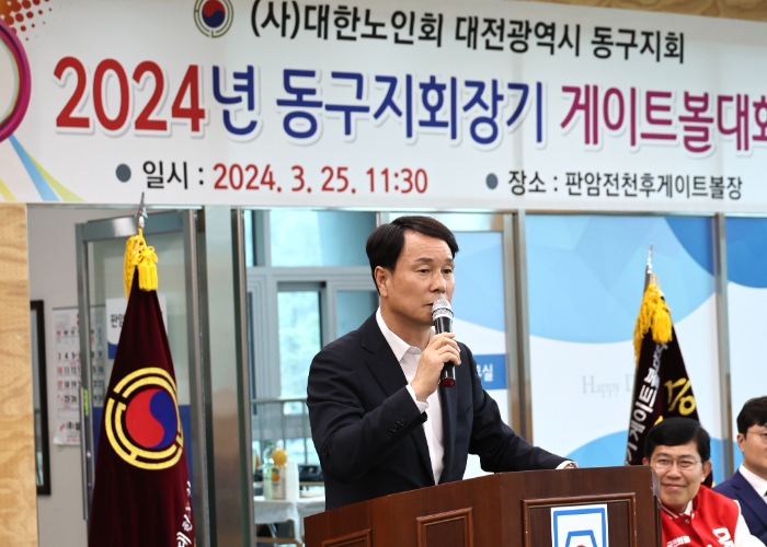[뉴스서치] 대전시의회 이상래 의장은 25일 판암전천후게이트볼장에서 개최된 ‘2024년 대한노인회 대전동구지회장기 게이트볼 대회’에 참석해 대한노인회 대전동구지회 박헌철 회장을 비롯한 대전 동구 게이트볼 협회 황청의 회장과 인사를 나누고 관계자들을 격려했다.