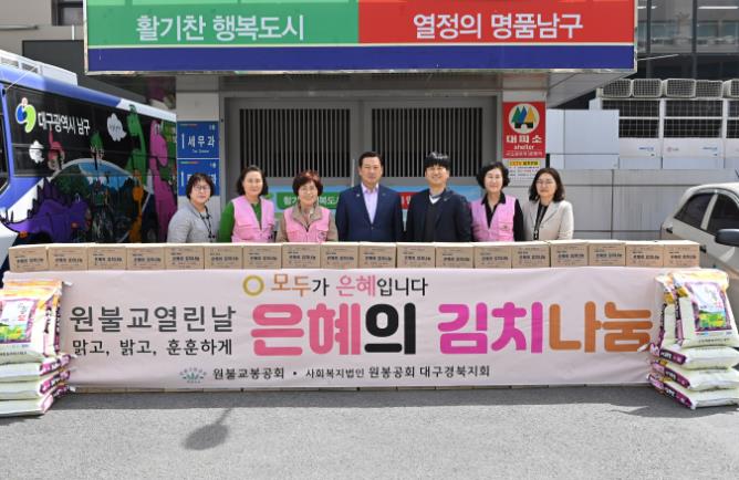 [뉴스서치] 대구 남구는 지난 4월 17일, 원불교(원봉공회) 대구경북지회에서 어려운 이웃을 위해 김치3kg 200상자 및 백미20kg 10포(350만원 상당)을 기탁했다고 밝혔다.