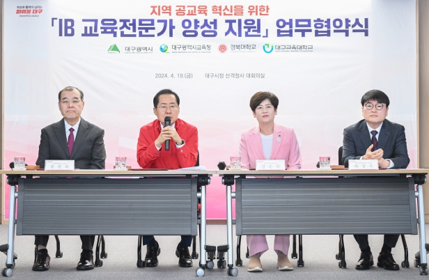 [뉴스서치] 대구광역시는 4월 19일 오전 11시 대구시청 산격청사에서 대구시교육청, 경북대학교, 대구교육대학교와 ‘IB(국제 바칼로레아)교육전문가 양성 지원’을 위한 업무협약을 체결했다.