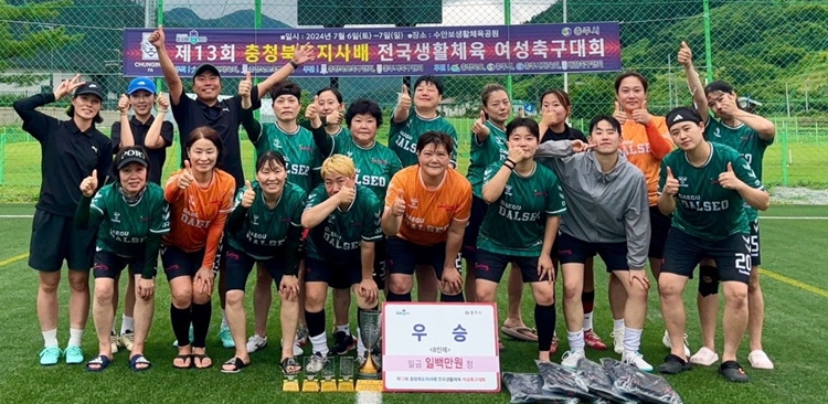 [뉴스서치] 대구 달서구청 여성축구단은 지난 7월 6일, 7일 양일간 충주시 수안보생활체육공원에서 열린 제13회 충청북도지사배 전국생활체육 여성축구대회에 출전해 우승했다.