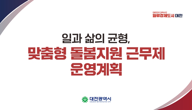 이장우 대전시장은 6일 오후 14시 시정 브리핑을 통해 일과 삶의 균형, 맞춤형 돌봄지원 운영계획을 발표하고, 8월부터 시 공무원을 대상으로 시행을 예고했다.
