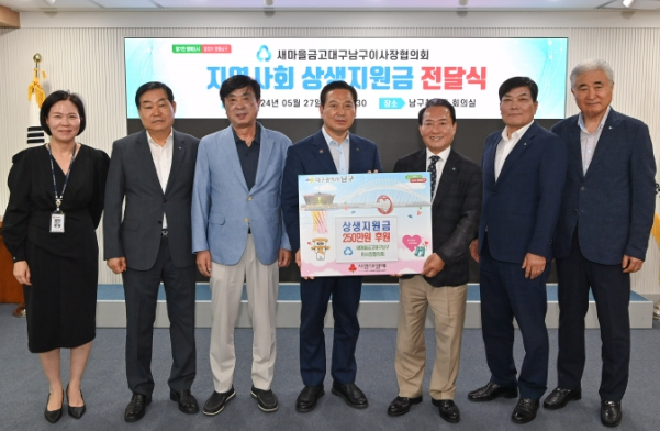 [뉴스서치] 새마을금고 대구남구이사장협의회는 25일 새마을금고 창립기념일인 동시에 ‘MG새마을금고 지역상생의 날’을 기념하여 새마을금고중앙회의 상생지원금 250만원을 대구 남구에 전달했다.