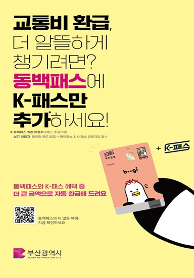 [뉴스서치] 부산시는 오는 8월 1일부터 부산시민에게 대중교통 환급 혜택을 더욱 폭넓게 제공하기 위해 국토교통부의 케이(K)-패스와 연계한 'K패스-동백'을 시행한다고 밝혔다.