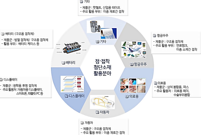 소재산업은 시의 중점산업인 수소, 바이오, 이차전지, 모빌리티의 근간이 되는 후방산업으로 특히, 첨단 전방산업의 핵심 소재인 점 접착 소재는 기술고도화에 따라 다양한 분야에서 최종 제품의 경량화, 고기능화를 위한 수요가 증가하고 있다.