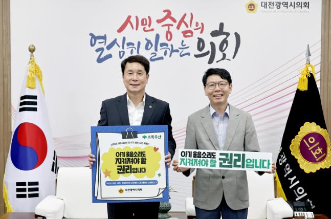 이상래 의장은 부모의 연령이나 국적, 장애유무와 상관없이 모든 출생은 소중하다는 캠페인 취지에 깊은 공감을 표하며 “대전시의회는 영아가 권리를 가진 국민으로서 안전하고 건강하게 성장할 수 있도록 관심과 지원을 아끼지 않겠다”고 전했다.