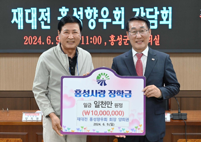[뉴스서치] 홍성군은 재대전홍성향우회 양희권 회장이 지난 9일 홍성군청을 방문해 홍성사랑장학금 1,000만원을 기탁했다고 밝혔다.