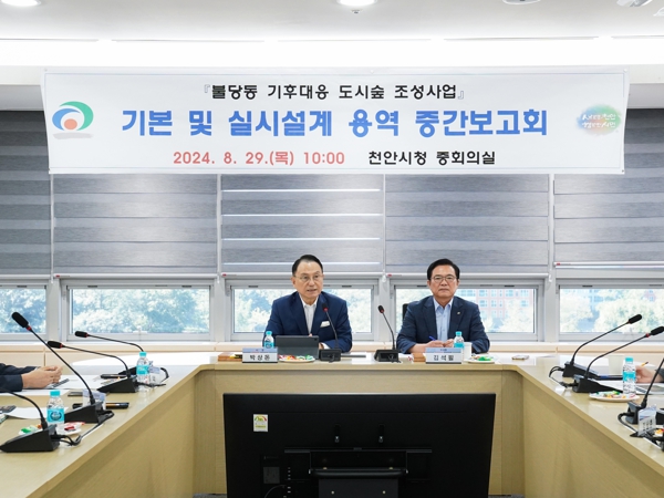 [뉴스서치] 천안시는 29일 불당동 기후대응 도시숲 조성사업 기본 및 실시설계 용역 중간보고회를 개최했다.