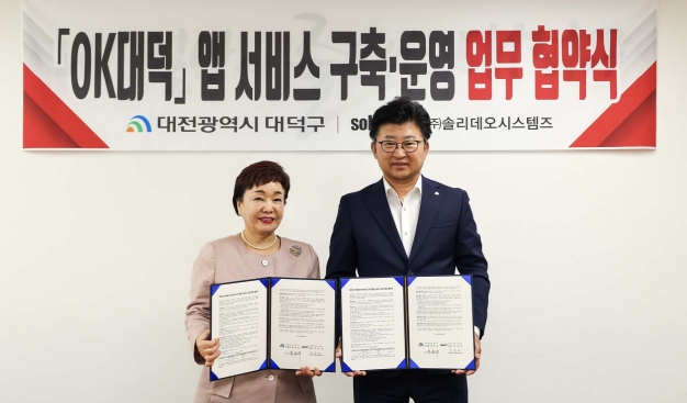 [뉴스서치] 대전 대덕구는 지난 20일 대덕구청 구민의 사랑방에서 민원인이 핸드폰으로 공문 수령 및 민원 접수가 가능한 ‘OK대덕’ 어플리케이션 서비스를 구축 ·운영하기 위해 (주)솔리데오시스템즈와 업무협약을 체결했다고 밝혔다.