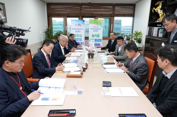 ▲ 영천시는 농식품 수출 활성을 위한 정책을 추진하기 위해 본격적인 수출분야 지원사업을 추진한다. 지난 3월 12일 미주한인상공회의소 총연합회 회장단을 초청해 미국 수출 활성화를 위한 업무협약을 체결했다. |