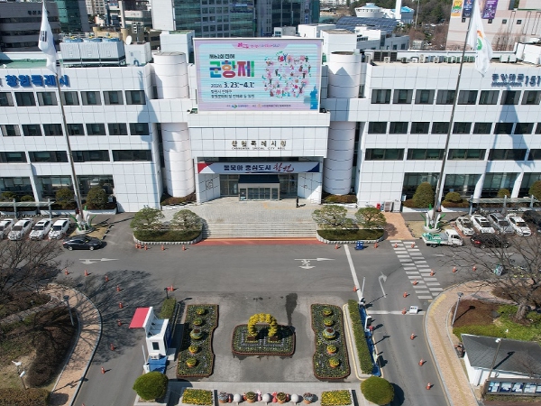 ▲ 드론으로 촬영한 창원특례시청 전경 |