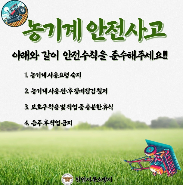 | ▲ 천안서북소방서, 봄철 농기계 안전사고에 유의하세요! |