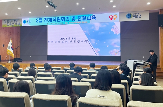 [뉴스서치] 청송군농업기술센터는 지난 28일 농업기술센터 대회의실에서 전 직원을 대상으로 직원 역량강화 및 친절교육을 실시했다.