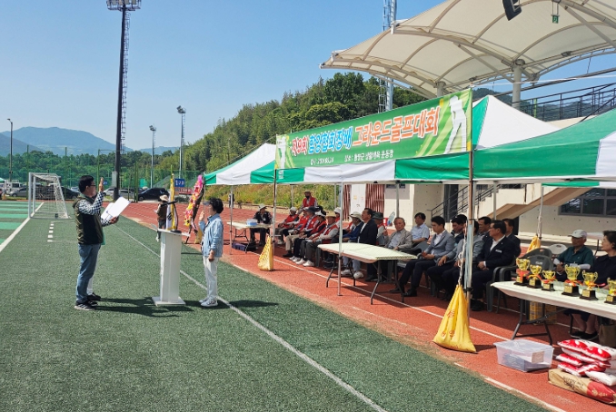 [뉴스서치] 함양군은 24일 오전 10시 스포츠파크 1구장에서 11개 읍·면 선수 및 임원 등이 참여한 가운데‘2024년 제9회 함양군협회장배 그라운드골프대회’를 개최했다.
