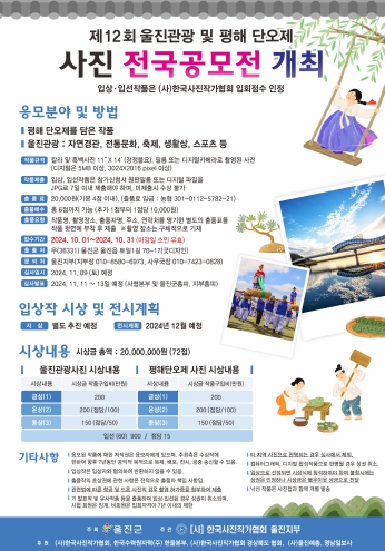 이번 공모주제는‘대한민국의 숨’이 담긴 관광지와 울진군의 대표적 민속축제인 평해단오제이며, 공모전을 통해 울진의 다양한 관광명소를 발굴하고 단오제만의 차별화된 볼거리를 널리 알려 관광객 유치를 위한 홍보 마케팅 자료로 활용할 예정이다.