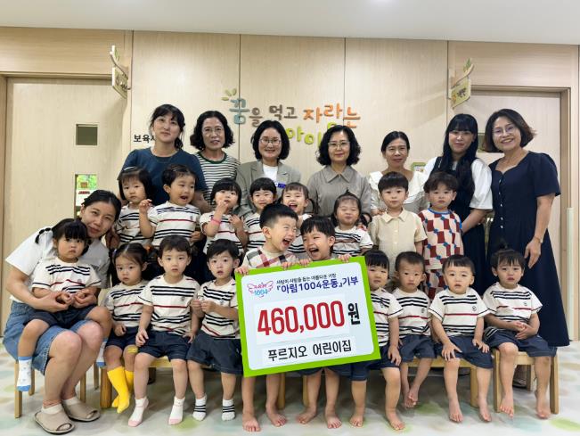푸르지오 어린이집은 지난달, 어린이집 앞마당에서 열린 아나바다 시장놀이에서 교직원과 학부모 그리고 원아들이 함께 장난감, 동화책, 의류와 다양한 먹거리를 직접 만들어 서로 판매하며 모은 수익금 46만 원 전액을 기부하여 그 의미를 더했다.