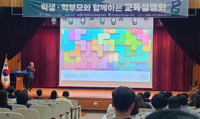 [뉴스서치] (재)영덕군교육발전위원회는 지난 23일 오후 6시 30분 영덕군민회관에서 입시전문가 타임교육입시연구소의 이해웅 소장을 초청해 교육 설명회를 개최했다.