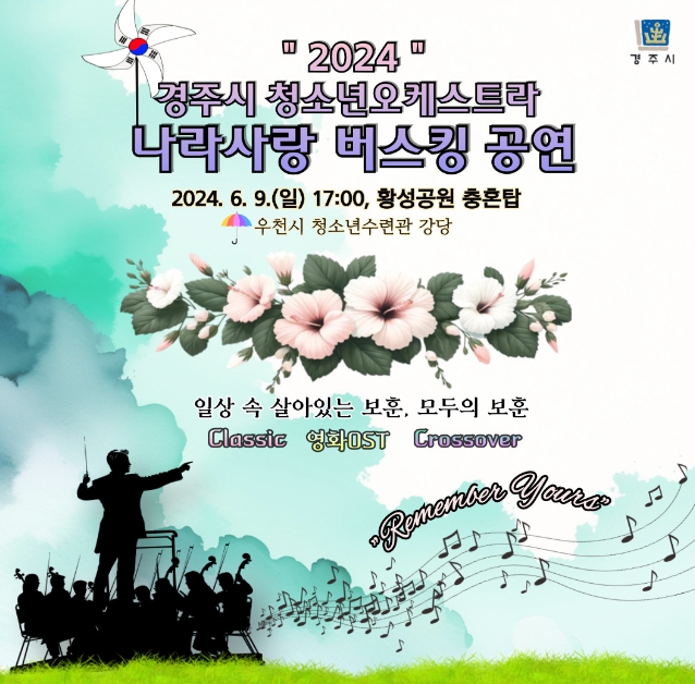 주낙영 경주시장은 “호국보훈의 달을 맞아 대한민국을 지키기 위해 희생하신 호국영령들의 숭고한 넋을 기리고, 경주시 청소년오케스트라의 하나 된 울림으로 위로와 감동을 전하고자 하니 많은 관심 바란다”고 전했다.