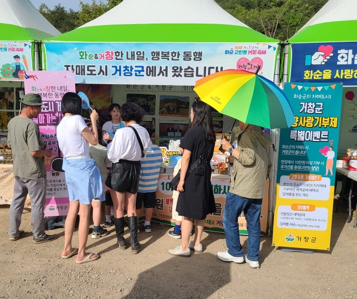 구인모 거창군수는 “자매도시인 화순군 대표 축제에서 이루어지는 고향사랑기부제 홍보는 자매도시 간 상생과 협력의 다지는 특별한 의미가 있다”라며 “이번 홍보를 통해 거창군과 화순군이 서로에게 제2의 고향이 될 수 있는 계기가 되기를 바란다”라고 말했다.