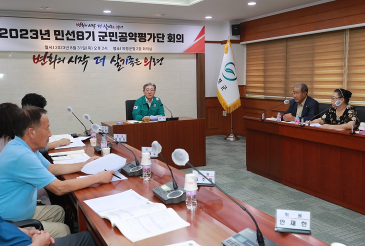 한편 현재 군은 민선8기 공약으로 농촌협약(700억원, 5년간) 공모사업 유치, 청년정책 패키지 사업, 작은학교 살리기 추진, 사물인터넷 활용 경로당 안전시스템 구축 등은 이행 완료했다. 부림산업단지 준공, 국가도로망 남북6축(진천~합천) 노선 연장, 궁류 사건 희생자 추모공원 조성, 의령시장 주차공간 확충 등의 사업은 계속 추진하고 있다.