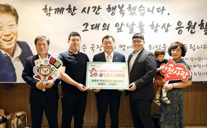 이경민씨는 “아버지의 꾸준한 합천 사랑을 실천하는 모습을 보고 저희도 아버지의 송별식이라는 특별한 날, 고향을 위한 뜻깊은 일을 하고 싶어 기부에 동참하게 됐다”며 “합천 발전에 조금이나마 보탬이 되길 바란다”고 말했다.