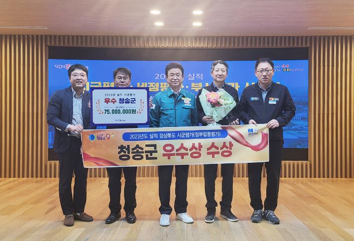 정부가 지방자치단체를 대상으로 국가 위임사무와 국고보조사업, 국가주요 시책을 평가하는 정부합동평가에서 청송군이 경상북도 내 우수 군으로 선정된 것은 제도 시행 이후 처음 있는 일이다.
