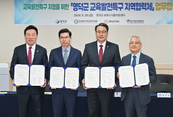 [뉴스서치] 영덕군은 교육발전 특구 시범지역 선정을 위해 영덕군의회, 영덕교육지원청, 대구한의대학교와 지난 20일 지역 협력체 업무 협약을 체결했다.