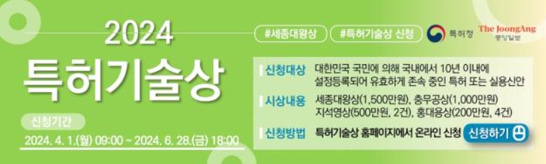 특허청, 기술혁신을 향한 첫걸음! 2024년 특허기술상 접수 시작