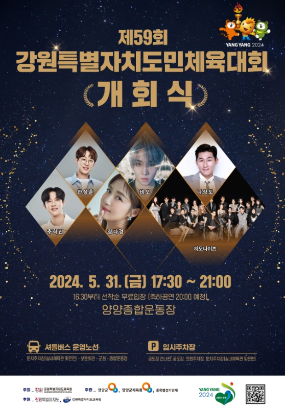 또한 군은 대회 준비를 위해 땀 흘려온 선수단을 위로하고 양양을 방문하는 선수, 임원, 방문객들을 환영하기 위해 체전 기간 중 다양한 볼거리와 즐길거리를 제공하기로 했다.