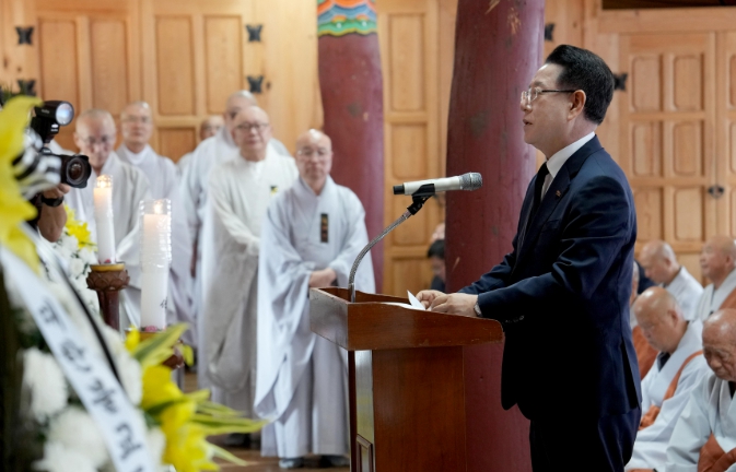 김영록 지사는 조사(弔辭)를 통해 “만당 종사의 삶은 꺼지지 않는 등불 같은 정진이자, 중생을 위한 보살행이었고, 불갑사를 전국적 성지로 일구고, 한국불교가 대중과 세계로 나아가는 길을 닦으셨다”며 “아직 이루지 못한 구층목탑 건립의 원력을 가슴에 새기고, 전남도가 종사님이 일군 불교문화 성지를 더욱 장엄하게 가꾸겠다”고 말했다.