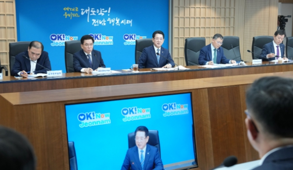남해안 종합개발청의 전남 설립도 강조했다. 김영록 지사는 “지난달 서울에서 지역 국회의원들이 함께한 영호남 시도지사 협력회의에서 ‘남해안 발전특별법’을 빨리 추진하기로 합의했다”며 “이와 연계해 국가와 지방이 융합한 새로운 형태의 기관인 ‘남해안 종합개발청’이 전남에 설립되도록 도가 선도적이고 강력하게 나서야 한다”고 말했다.