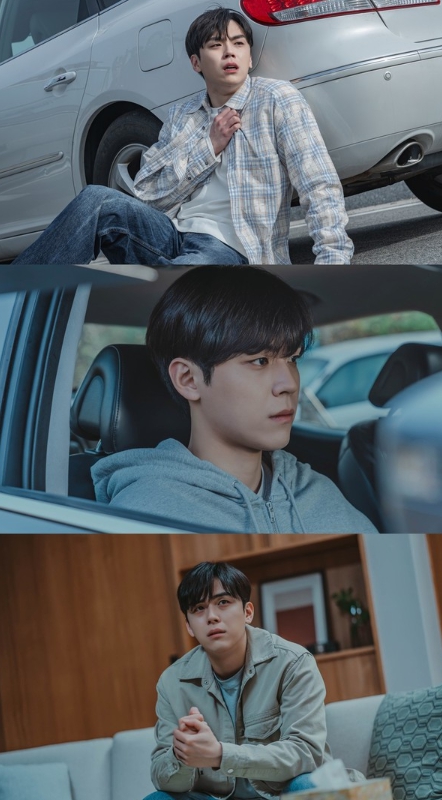 이처럼 걷잡을 수 없는 위기에 빠진 송호영의 모습은 공개된 사진 속에서 보다 확실하게 엿보인다. 충격에 빠져 주저앉은 모습부터 울먹이는 눈, 창백한 안색까지 그의 위태로움과 두려움이 고스란히 느껴진다.
