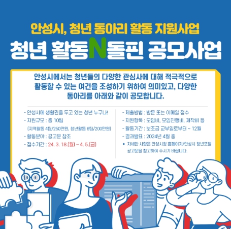 신청을 희망하는 청년 동아리(단체)는 안성시청 홈페이지의 고시·공고란 및 안성시 청년포털에서 확인할 수 있다.
