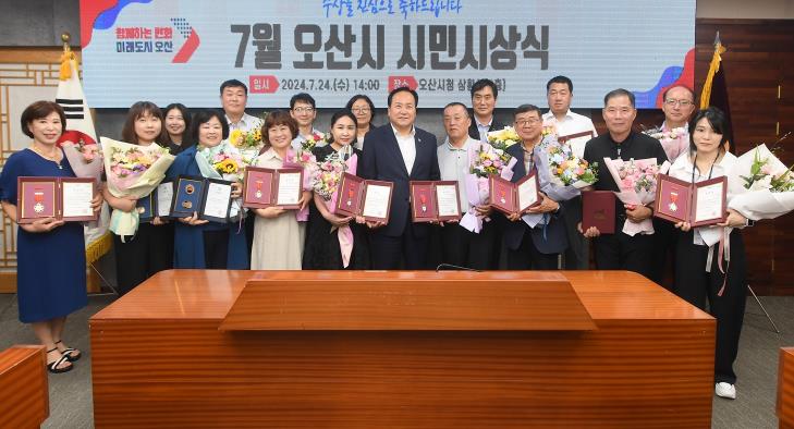 [뉴스서치] 오산시는 지난 24일 2024년 7월 시민시상식을 오산시청 상황실에서 개최했다.