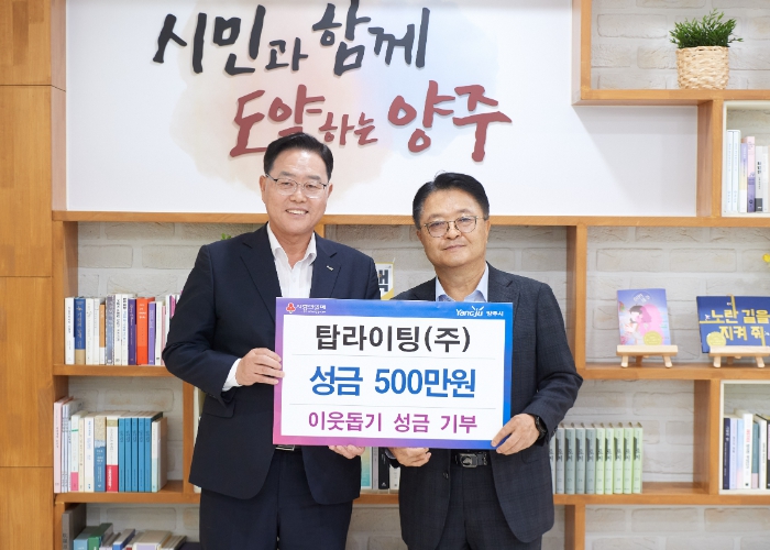 [뉴스서치] 양주시가 2일 오전 탑라이팅(주)에서 관내 어려운 이웃을 위해 써달라며 성금 500만 원을 기부했다고 밝혔다.