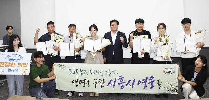 [뉴스서치] 시흥시가 26일 시청 글로벌센터에서 집중호우에 따른 위기 상황에서 적극적인 인명구조 활동을 펼친 시흥시 공무원 6명에게 유공 표창을 수여했다.