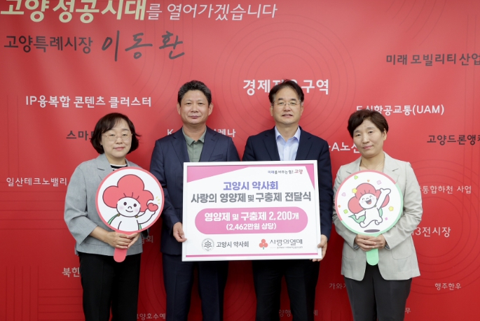 전달식에는 이동환 고양특례시장과 고양시 약사회 김계성 회장, 정정선 부회장 등 관계자 4명과 경기북부공동모금회 이경아 본부장이 함께 했다.