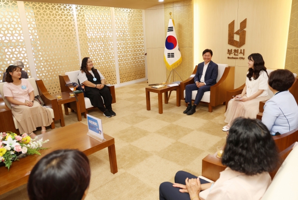 이후 5층 시민접견실에 들러 조용익 부천시장과 청사를 둘러본 소감을 나누고 부천에 대해 궁금한 점을 묻고 답하며 자유롭게 대화했다.